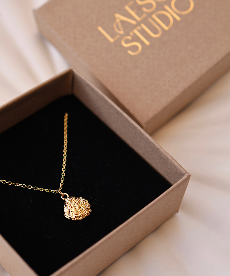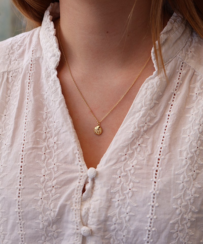 Den smukke Oestrea mini halskæde er taget direkte ud af en havfrue film og er inspireret af de smukke Limfjords østers Ostrea Edulis.