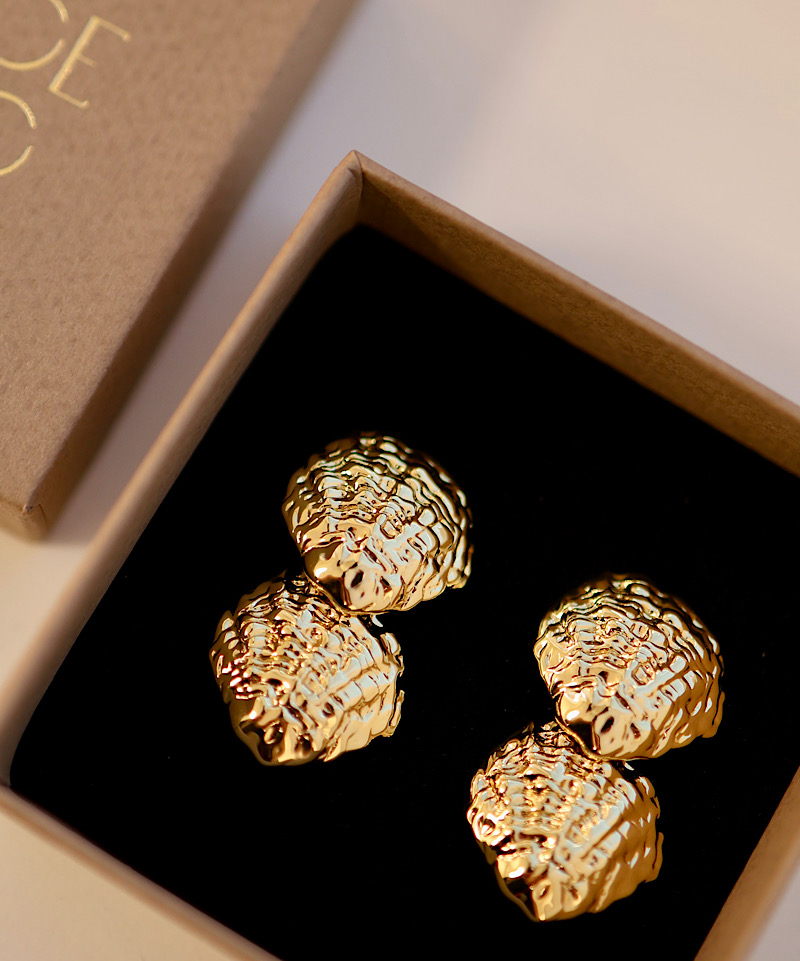 Limfjordsøstersen er kendt som ”den flade østers” og er næsten rund med en bladet struktur, med ensartede kendetegn. Den ene skal er buet og ligger som et låg oven på den flade skal for at beskytte hjertet. Jeg har plukket østers på Mandø og blev helt fortryllet af de smukke strukturer som glimtede i den klare vand. Øreringene er både en havfrue og gudinde værdig og jeg håber du vil føle dig ligeså fortryllet som jeg, når du bærer dem.